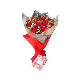 15 red rosesThe image displayed is indicative in nature. Actual product may vary in shape or design as per the availability.Occasionally, substitution of flowers is necessary due to temporary and/or regional unavailability issuesWrappings and ribbon colours may..