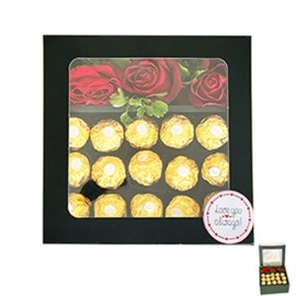 "Endless Love Confections: A charming box with 15 Ferrero Rocher chocolates and 3 beautiful roses. Perfect for expressing love and sweet sentiments in a delightful and elegant way."..