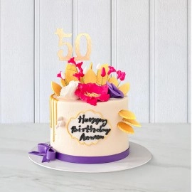 2.5 KGLove of Purple Cake: a visually stunning masterpiece. Its velvety purple frosting encases layers of tender, moist sponge cake. A luscious purple cream filling adds depth, while edible decorations—shimmering pearls and delicate lavender blossoms—create a luxurious touch. Perfect for special occasions, it captivates with its beauty and tantaliz..