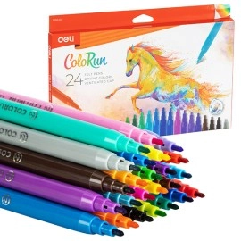 Elevate your drawing experience with the Deli 24 Colors Watercolor Pen Set. Perfect for children's DIY projects, school stationery supplies, and students' painting endeavors. These good-quality felt pens bring creativity to life...