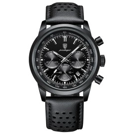 Elevate your style with the POEDAGAR Luxury Man Watch in a sleek black-black color combination. This high-quality waterproof chronograph features luminous details, making it a stylish and functional men's wristwatch. The leather band adds a touch of sophistication, and the quartz movement ensures accurate timekeeping. A perfect choice for casual oc..