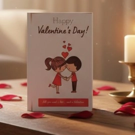 "Express love with our 'I Love You Card' cake, a sweet testament to affection. Layers of rich chocolate and vanilla create a delectable harmony, symbolizing the depth of emotions. Topped with edible fondant hearts, each slice is a heartfelt message. Elevate your special moments with this delightful confection, a perfect way to say 'I love you.'"..
