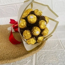 Delight your loved ones with this luxurious bouquet of 12 Ferrero Rocher chocolates, artfully arranged with decorative wrapping and floral accents. Perfect for birthdays, anniversaries, or as a sweet surprise, this golden treat blends elegance and indulgence in every bite..