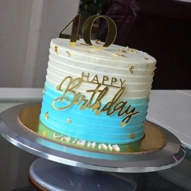 Celebrate in style with our Blue Delight Cake With Topper — a stunning two-tone cake frosted in elegant white and dreamy light blue. Topped with a sophisticated "Happy Birthday" topper, delicate pearl-like sprinkles, and smooth pastel textures, this cake brings a fresh and graceful vibe to any birthday celebration. Perfect for all ages and occ..